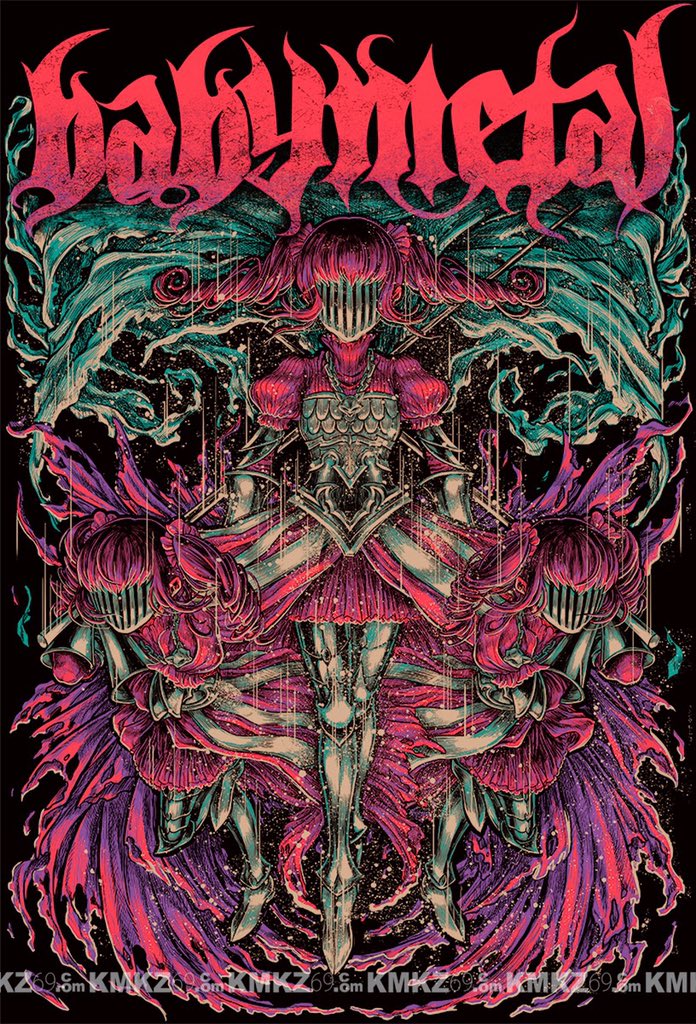 I was able to figure out which shirt design this was from the wonderful Babymetal T-Shirt Archive twitter account, so thank you Abbymetal for your hard work! The art is by Isana Kagami. This shirt is interesting to me because all three girls have pigtails in this artwork, whereas Su-metal wears a ponytail. It’s a sick ass shirt regardless, and I’m especially excited to see a Japanese metal band get some rep here. Despite the tension between South Korea and Japan, we can all get behind representing asian women in metal.