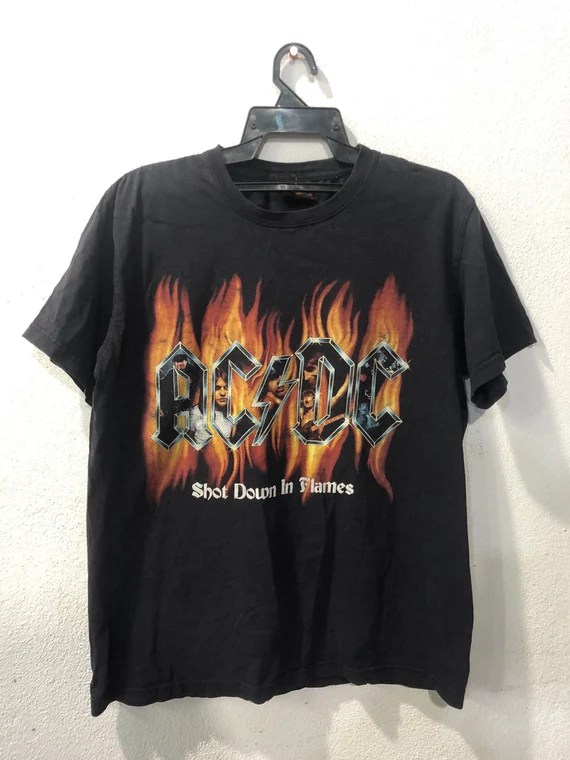 Thus completes the skirt, so all we have left is the AC/DC shirt Shuhua is wearing under her red top. It’s an AC/DC “Shot Down in Flames” shirt, which was allegedly popular in the 90s despite the song coming out ten years earlier. I’ve seen one of these for sale for $235 today, but there’s plenty reprints available. Take your pick! I actually love the design itself, reflections of the Highway to Hell art in the AC/DC logo. Definitely visually interesting, A+!