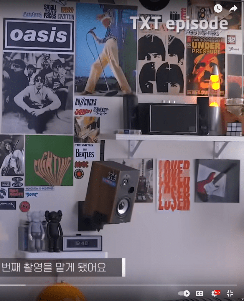 That pretty much sums up Beomgyu’s bedroom set. There’s a whopping 42 bands/artists represented on this bedroom set alone. With the addition of TXT themselves, that makes 43.
